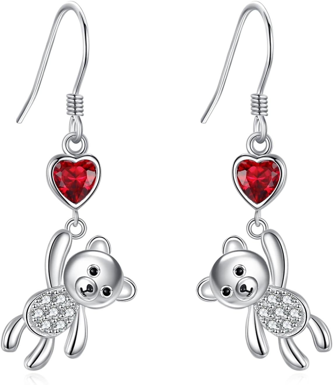 Teddy Bear Drop Dangle Earrings S925 Sterling Silver Heart Cute Bear Danging Earrings Jewelry Gift for Women