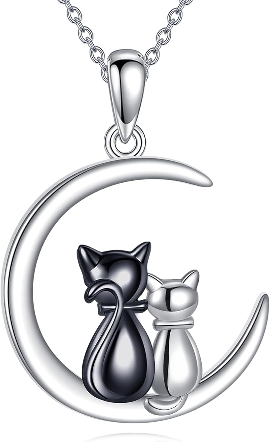 Cat Necklace for Women 925 Sterling Silver Black Cat Pendant Birthday Gifts Jewelry for Her