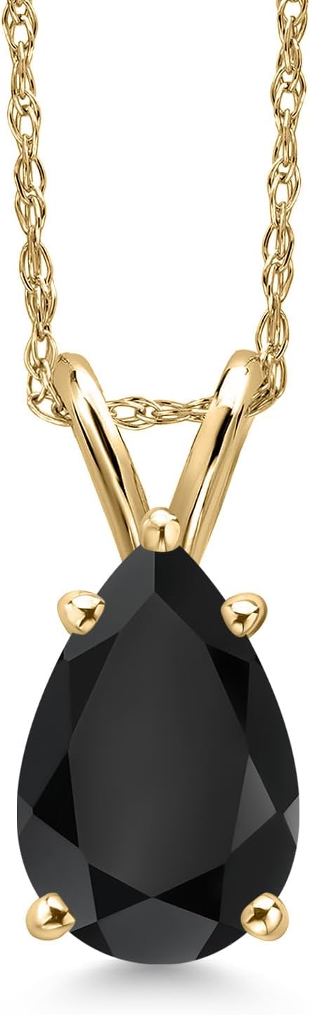 Gem Stone King Gemstone Birthstone Teardrop Pendant Necklace for Women | 14K Yellow Gold | Pear Shape 9X6MM | With 18 Inch Chain | Jewelry Gifts for Her Mom Wife