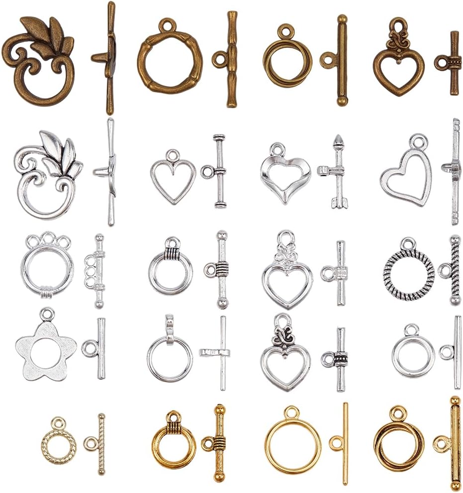 - Size and Content: 20 styles metal toggle clasps, 6 sets/style, 120 sets; the largest size is 2.4 x 1.9cm(0.94 x 0.75 inch), bar: 2.95 x 0.55cm(1.16 x 0.22 inch); the middle size is 1.7 x 1.3cm(0.67 x 0.51 inch), bar: about 2.4 x 0.3cm(0.94 x 0.12 inch); the smallest size is 1.25 x 0.9 x 0.16cm(0.49 x 0.35 x 0.06 inch), bar: 1.6 x 0.55 x 0.15cm(0.63 x 0.22 x 0.06 inch); come with 1pc plastic box