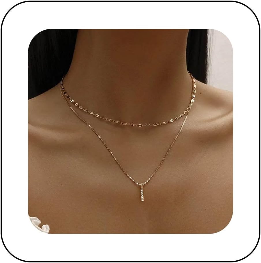Bohemian Layered Crystal Bar Choker Necklace Gold Cz Horizontal Bar Pendant Necklace Round Snake Bone Chain Necklace Small Bar Sleek Chain Necklace Jewelry for Women