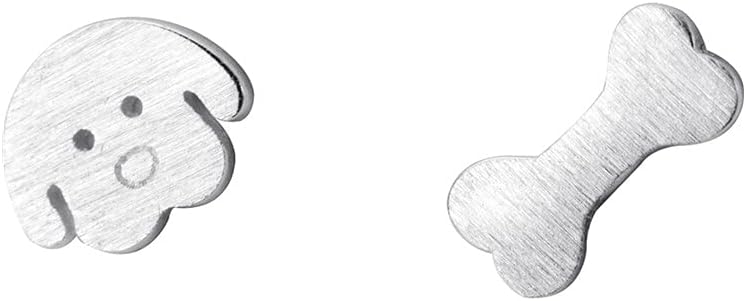 Tiny Cute Dog Bone Earrings 925 Sterling Silver Small Studs Earring for Women Hypoallergenic for Sensitive Ear Dainty Asymmetrical Animal Pet Post Birthday Jewelry Daughter (Brushed)