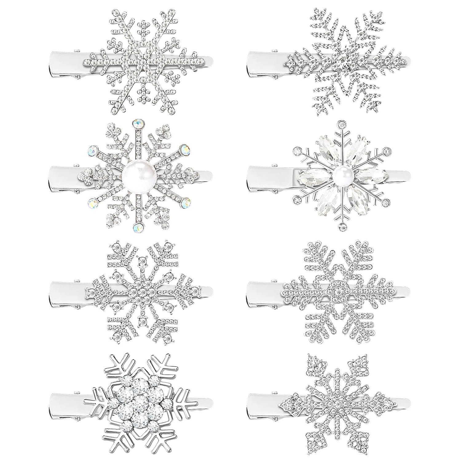 AUGSUN 8Pcs Christmas Snowflake Rhinestone Hair Clips, Winter Crystal Snowflake Hairpins Festive Costume Accessories for Women Xmas Holiday Party Gifts