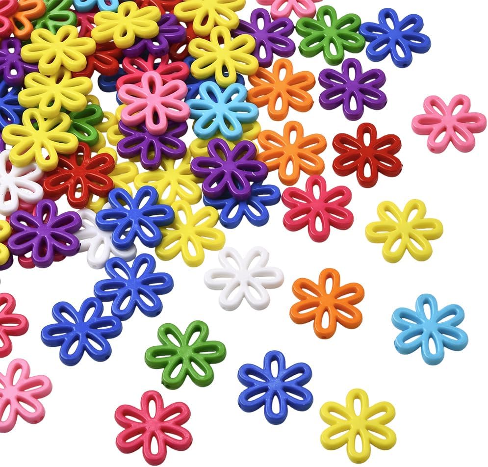 80Pcs Hollow Flower Beads Large Flower Charm Beads Random Multicolor Six Petals Acrylic Floral Charms Loose Spacers for Jewelry Making Bracelets Necklaces Earrings Phone Case DIY Crafts