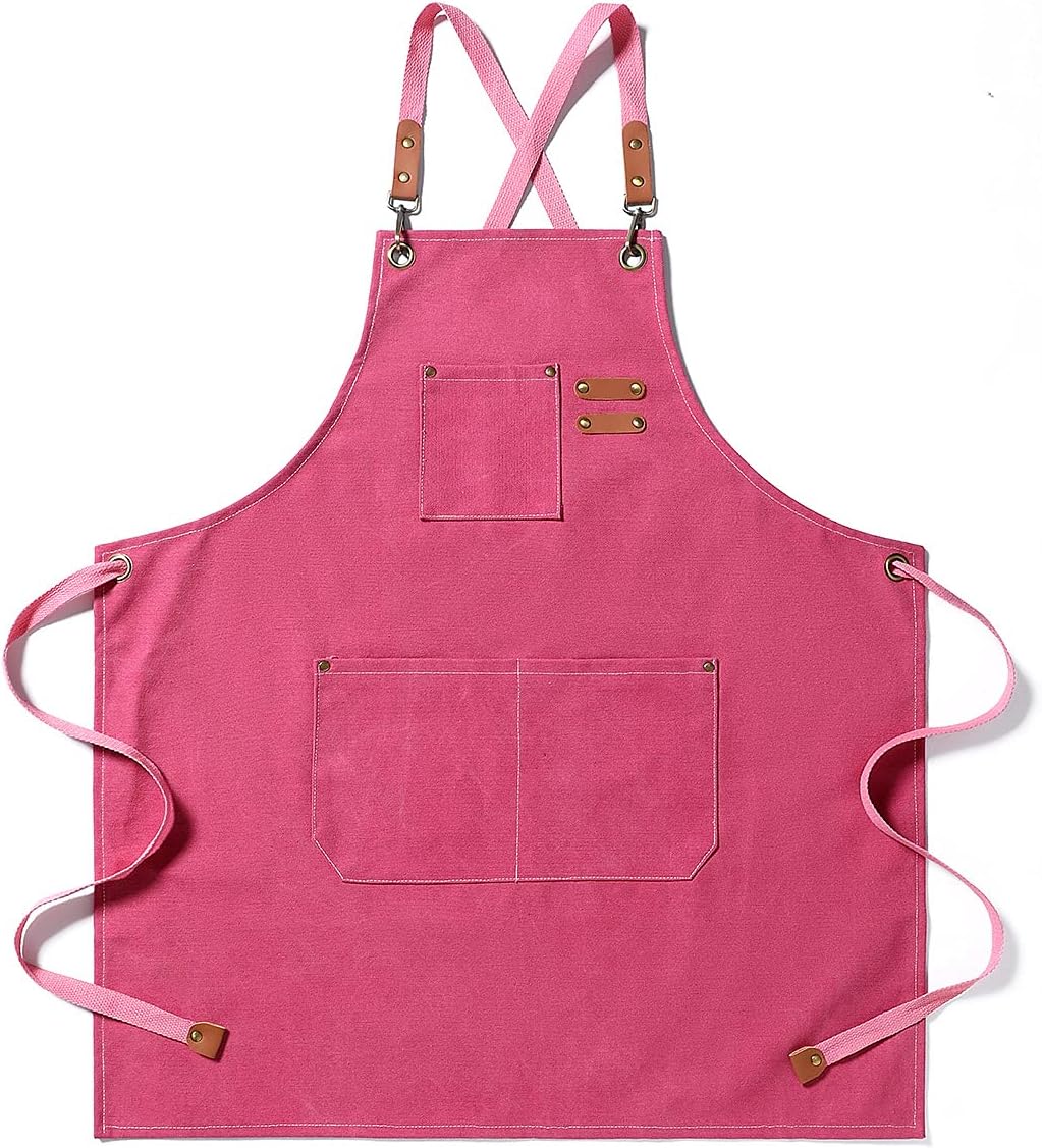 Hyzrz Chef Aprons for Men Women with Large Pockets, Cotton Canvas Cross Back Heavy Duty Adjustable Work Apron, Size M to XXL