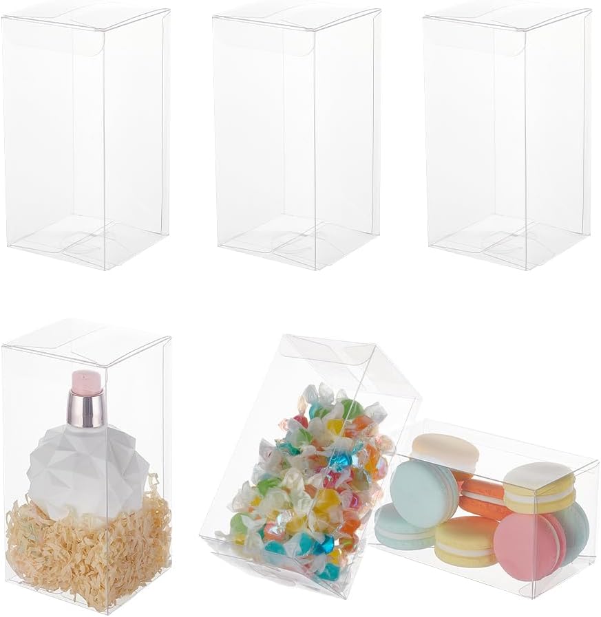 BENECREAT 20PCS 2.7x2.7x5.5 Inch Rectangle Clear Plastic Favor Boxes Gift Boxes for Wedding Birthday Party Cookies Chocolate, Home Decoration