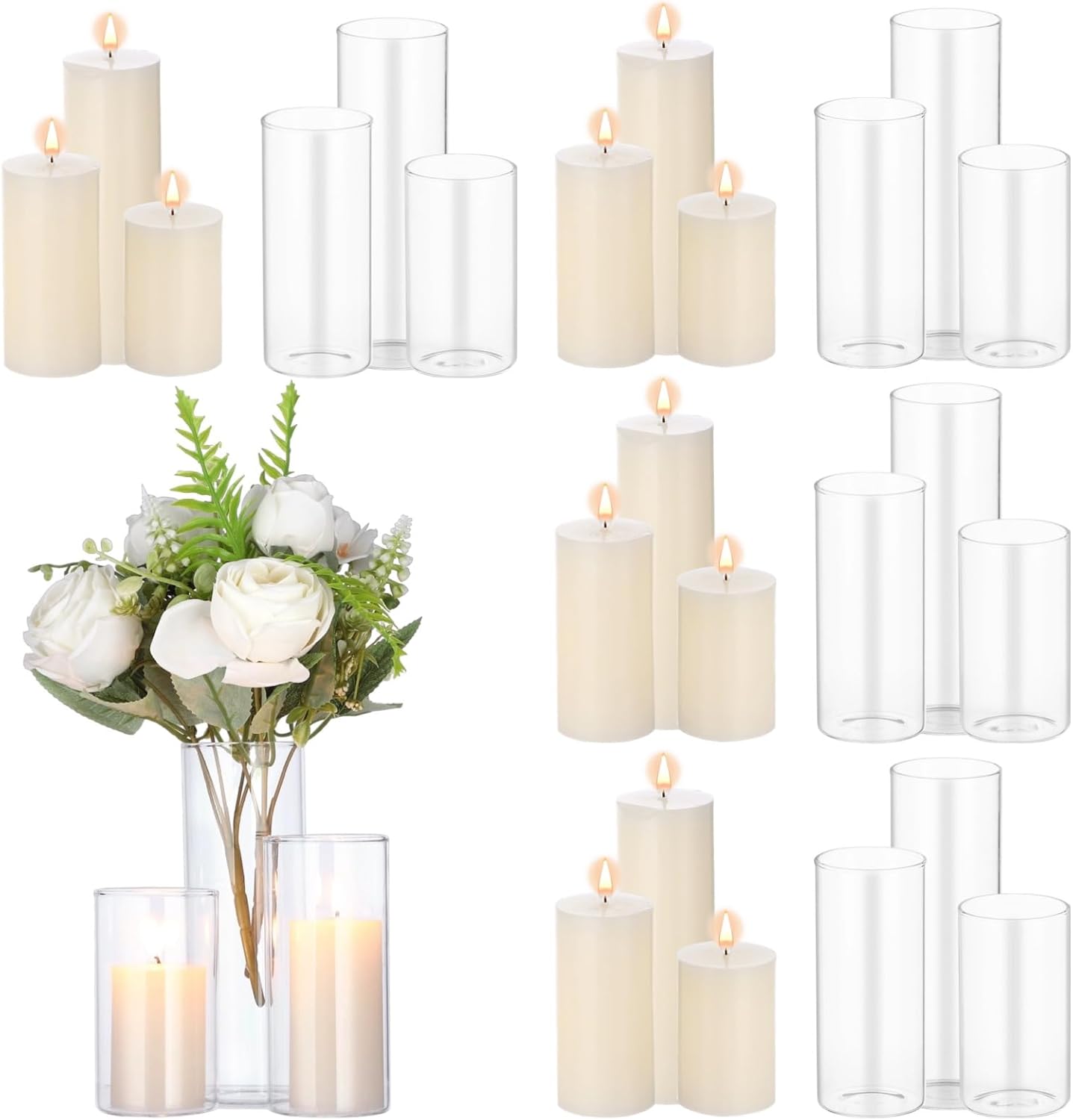 - All-Inclusive Candle Set: Includes 12 pillar candles and 12 hurricane glass holders; available in three complementary sizes; you can use them standalone for minimalist elegance or combine them for dynamic layered displays