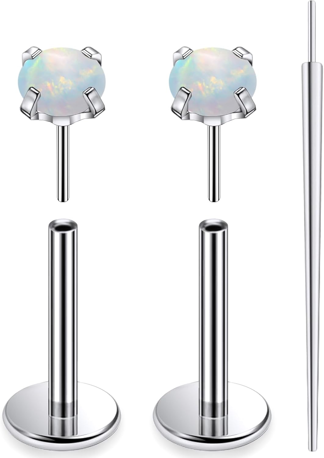 20G 18G 16G F136 Titanium Threadless Flat Back Earrings Nose Studs Tragus Forward Helix Conch Cartilage Lobe Earrings Medusa Labret Snake Bite Monroe Lip Ring Piercing Jewelry For Women Men