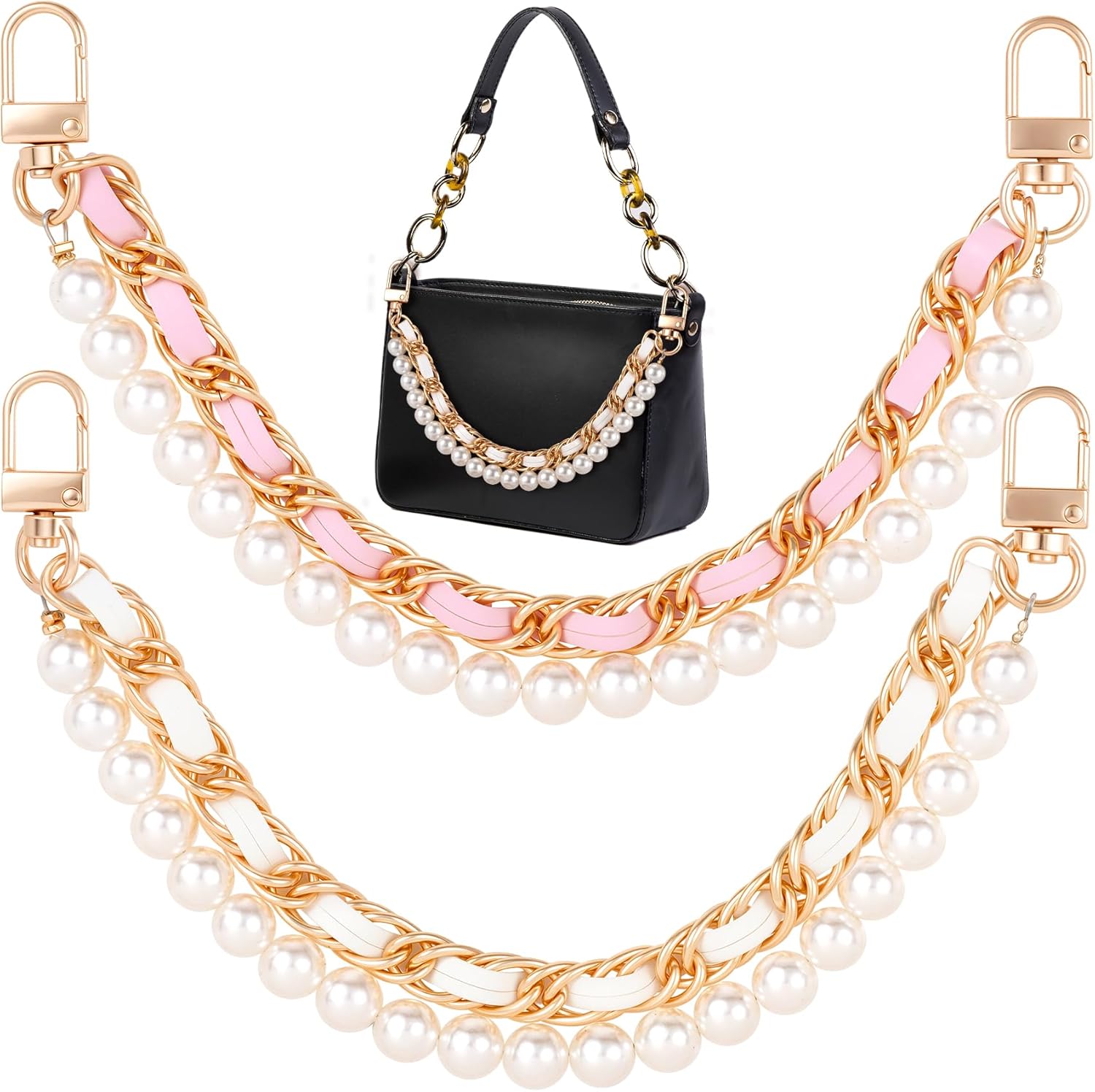 - Package and Length: 2pcs white/pink pearl purse charm chains are in the package. With a total length (including buckles) of 10.2 in/26 cm and pearl diameter of 0.4 in/1 cm, these bag chain are aesthetic and practical for bag strap replacement and decoration