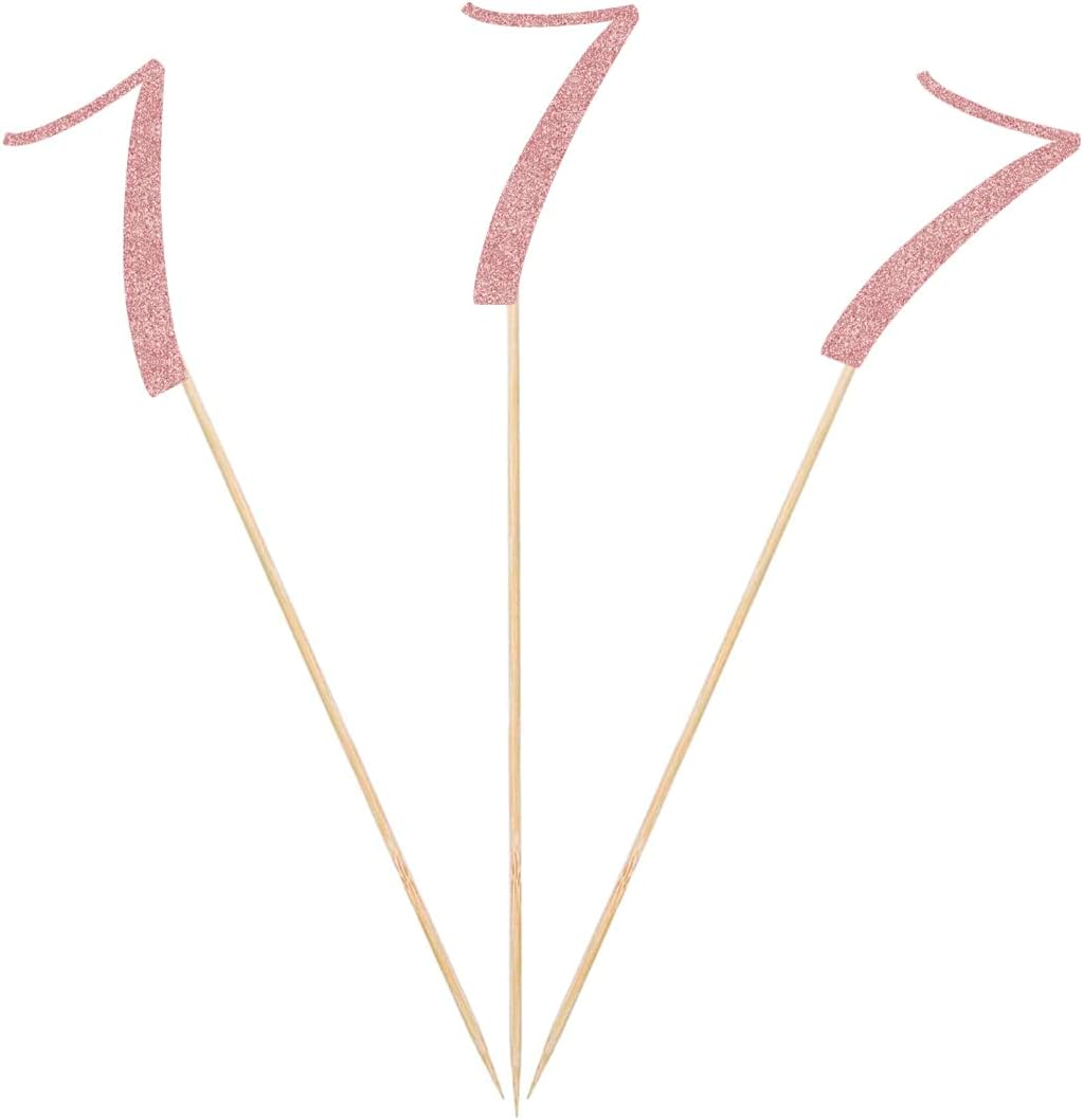Rose Gold 7th Glitter Birthday Centerpiece Sticks, 12-Pack Number 7 Table Topper Anniversary Party Decorations