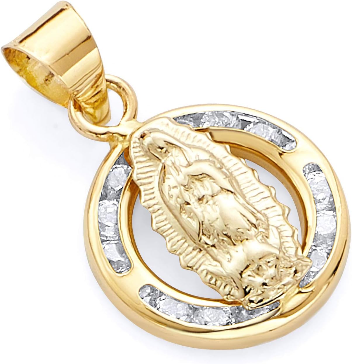 14k REAL Two Tone Gold CZ Religious Our Lady of Guadalupe Charm Pendant
