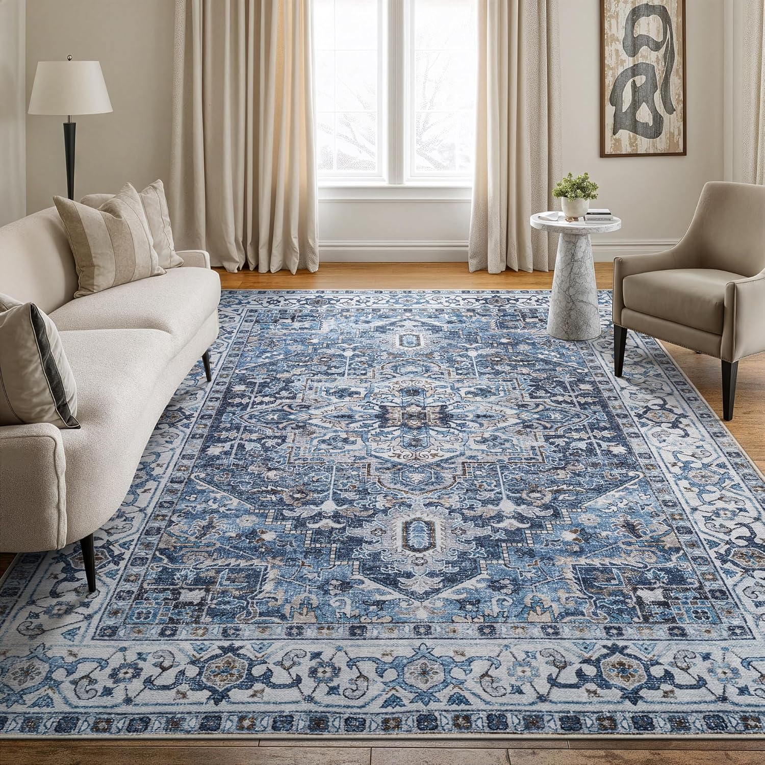 Bloom Rugs Caria Washable Non-Slip 8x10 Rug - Navy Blue Traditional Area Rug for Living Room, Bedroom, Dining Room, and Kitchen - Exact Size: 7'8" x 10'