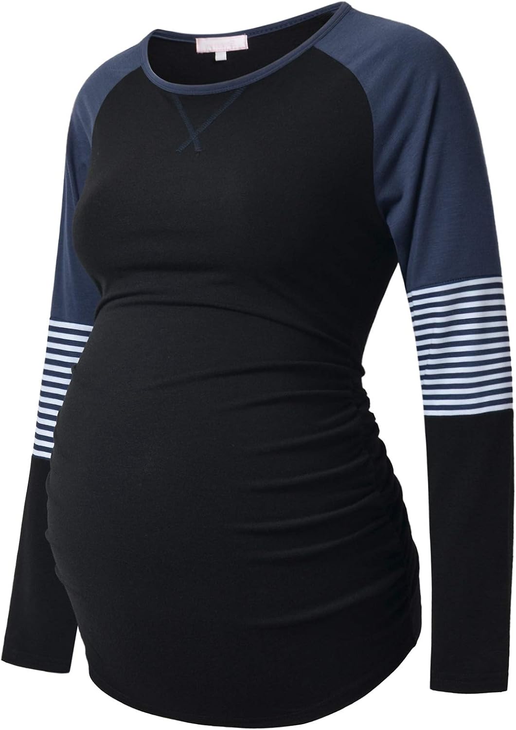 Bhome Long Sleeve Maternity T-Shirt Colorblock Baseball Tee Casual Pregnancy Tunic Top
