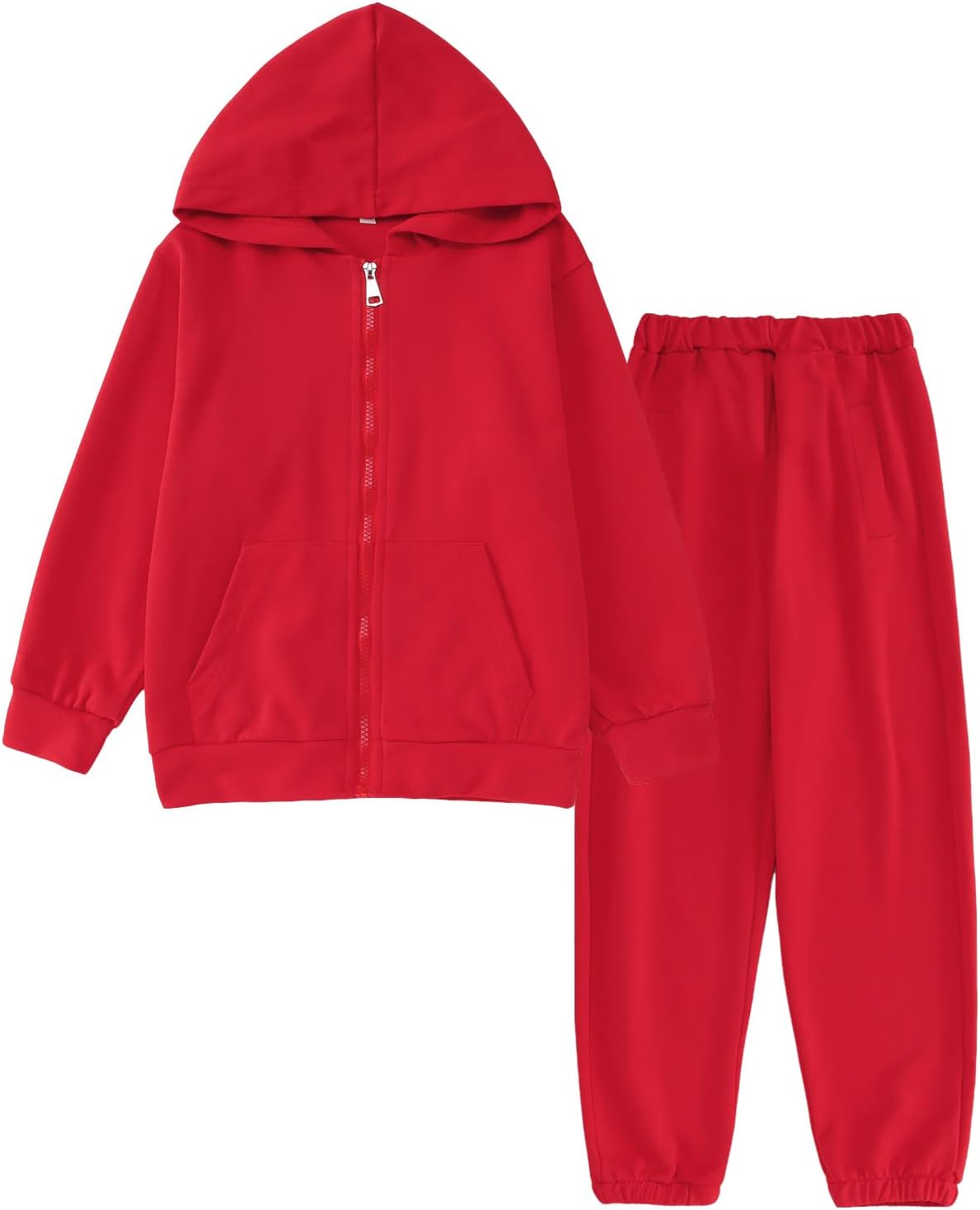 Ritatte Little Girls Boys Sweatsuit Solid Zipper Hooded Sweatshirt Tops Sweatpants Jogger Set Kids 2Pcs Fall Winter Outfits