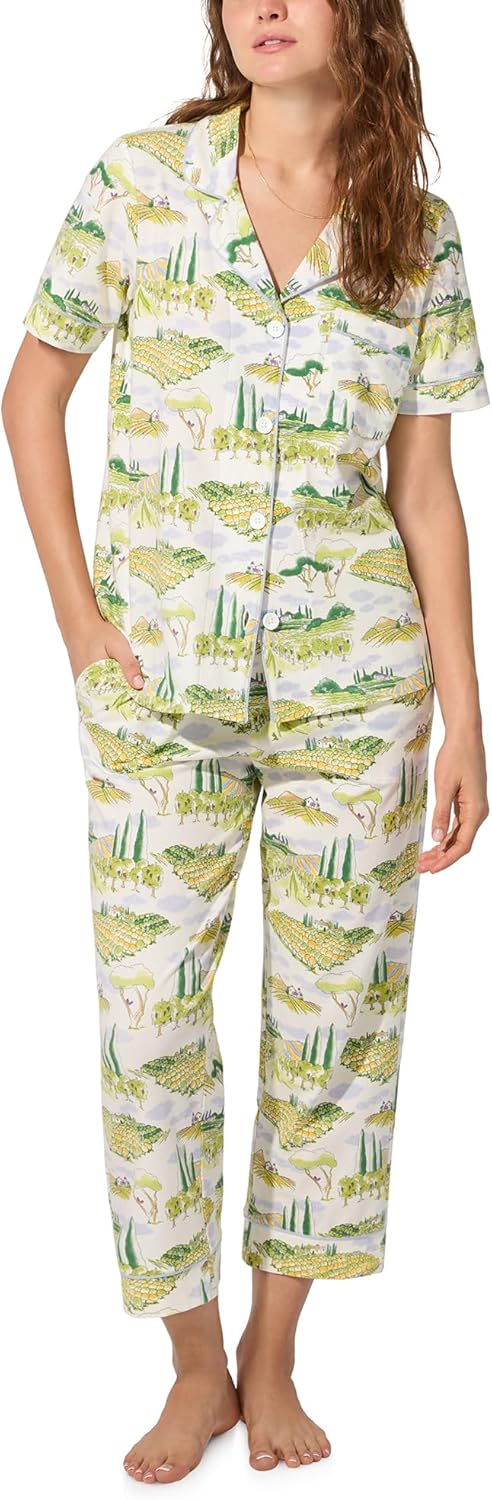 Bed Head PJs Womens Matching Pajamas - Soft Organic Cotton Button Down PJ Shirt & Cropped Pants Set - Loungewear & Sleepwear