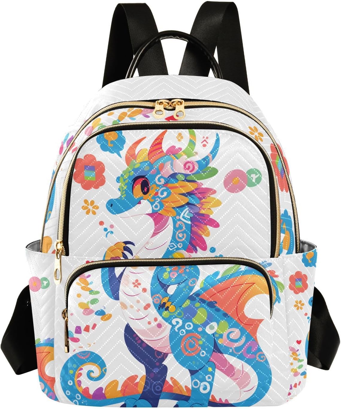 ALAZA Cute Dragon Cartoon Mini Backpack Purse for Women Travel Bag Fashion Daypack Back Pack Shoulder Bag