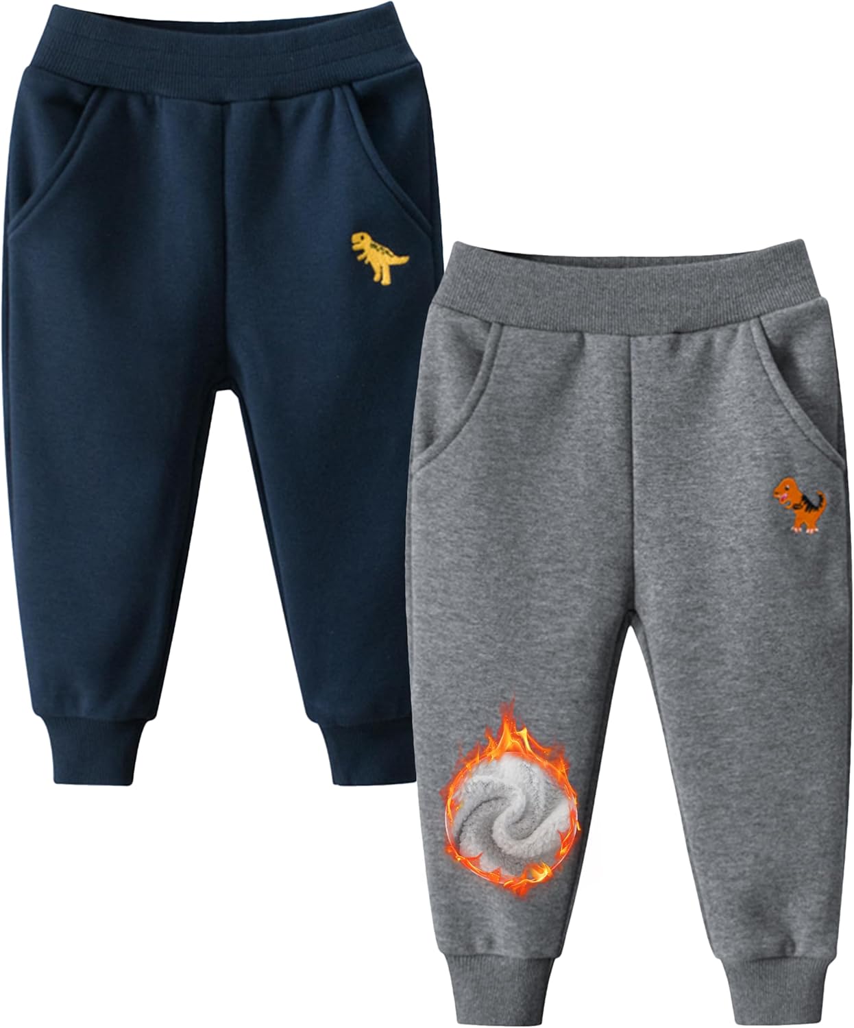 GFQLONG Toddler Boys 2 Pack Polar Fleece Jogger Sweatpants,Baby Winter Warm Pocket Lounging Bottoms
