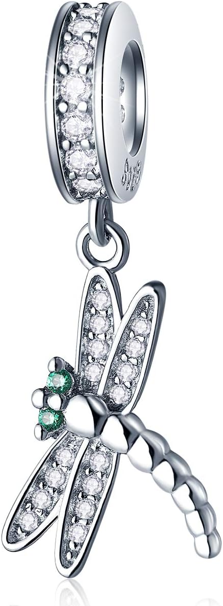 Sparkling Dragonfly Charms fits Pandora Insect Bracelet, Dangle Silver Plated Realistic Insect Pendant with CZ, Gift for Christmas/First Mothers Day/Valentines Day