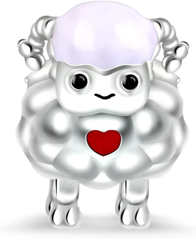 GNOCE Sheep Charm Bead Sterling Silver Propitious and Harvest Zodiac Signs Animal Charm Bead Fit Bracelet/Necklace Jewelry Gift for Women Mens