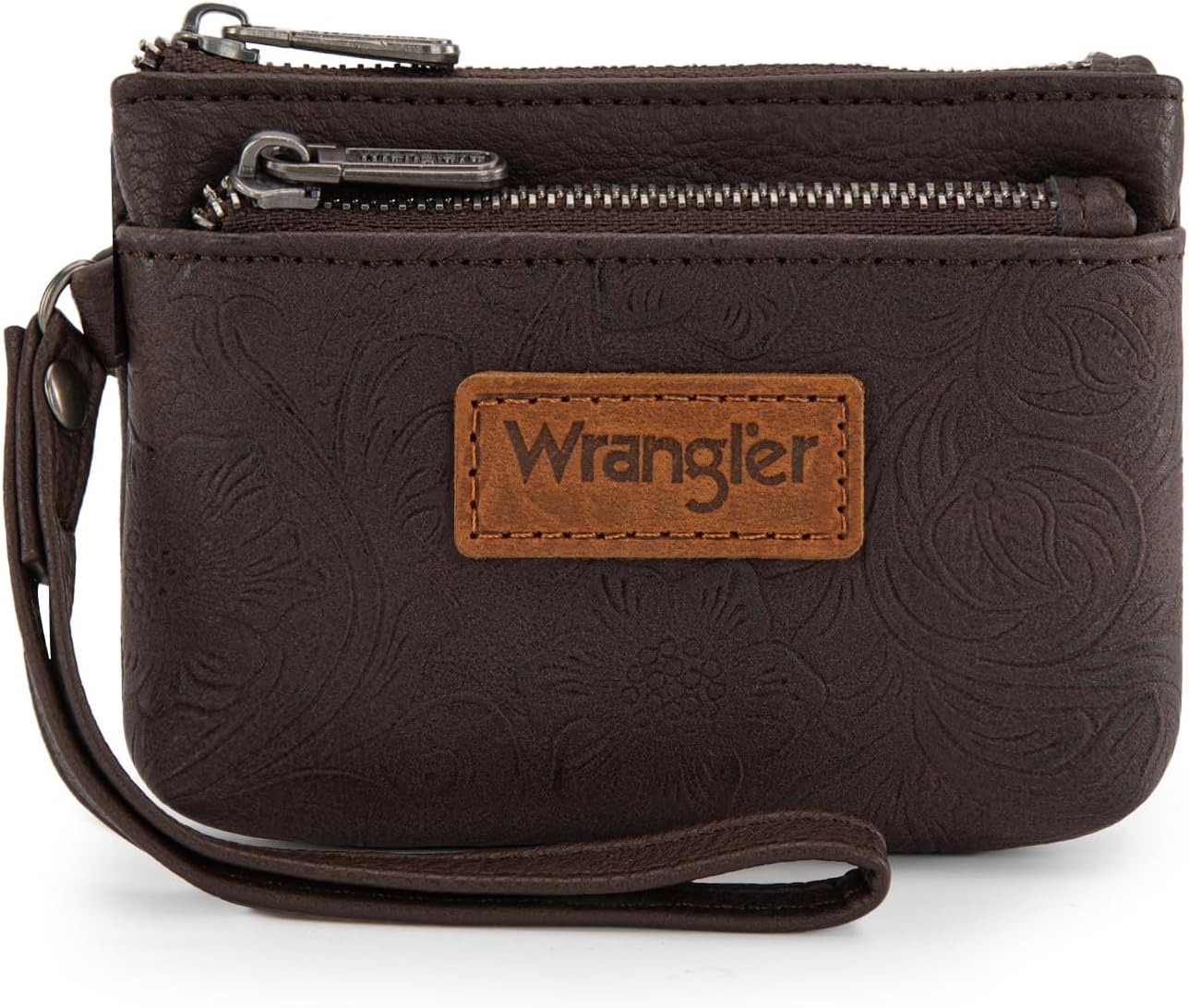 Wrangler Coin Purse for Women RFID-blocking Floral Embossed Change Pouch Wristlet Wallet Lightweight Portable Wallets Coffee