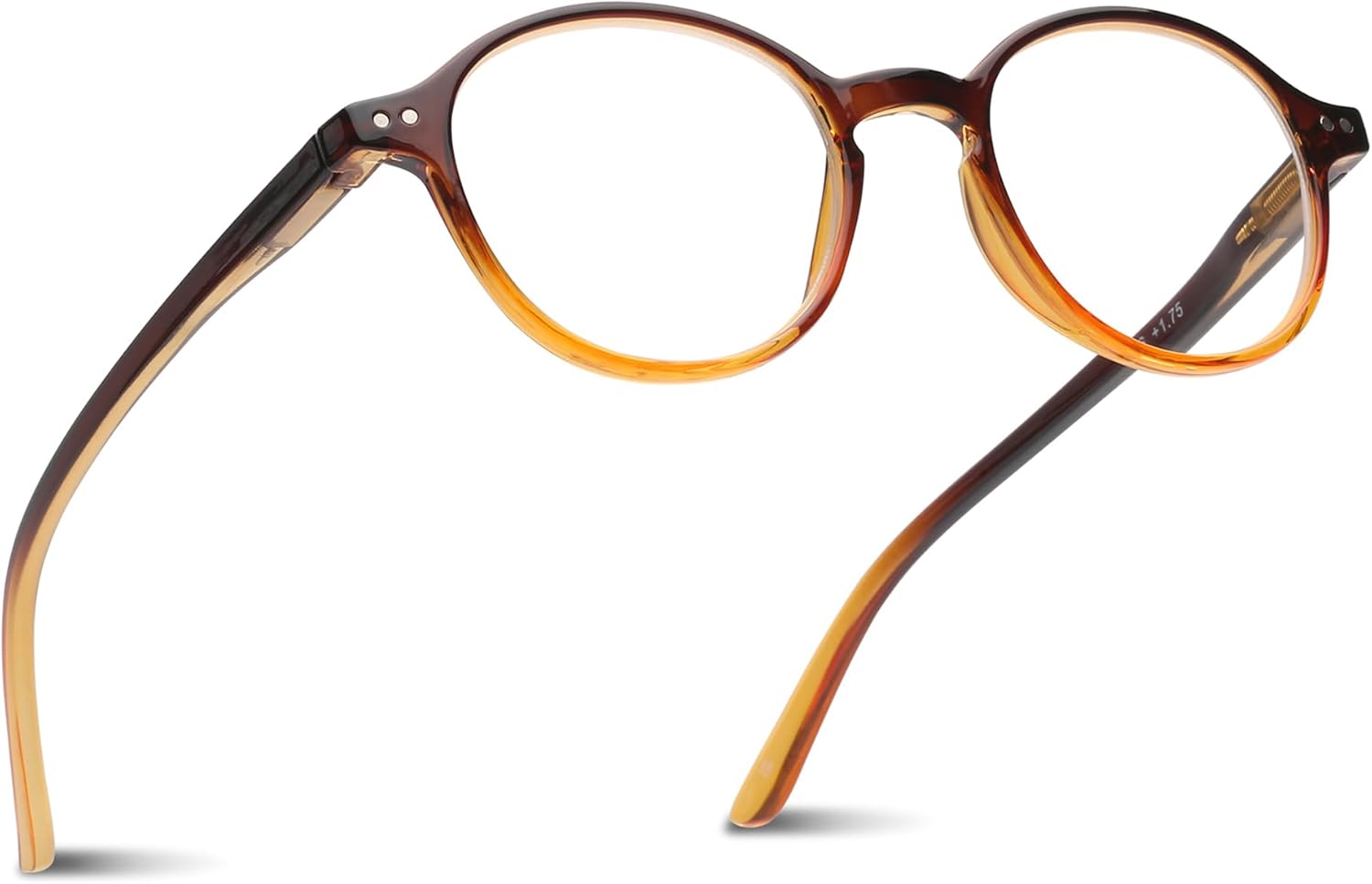 2SeeLife Small Round Reading Glasses for Men & Women – Narrow-Medium Fit, Sturdy Frame, Spring Hinges, Premium Retro Readers, Brown, +1.00