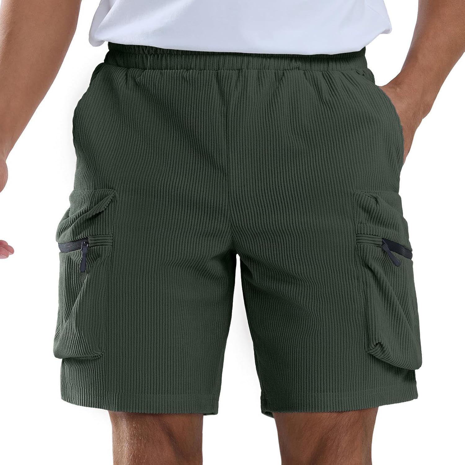APTRO Men's Casual Shorts 9" Fashion Corduroy Cargo Comfort Shorts with Zipper Pockets Relaxed Fit