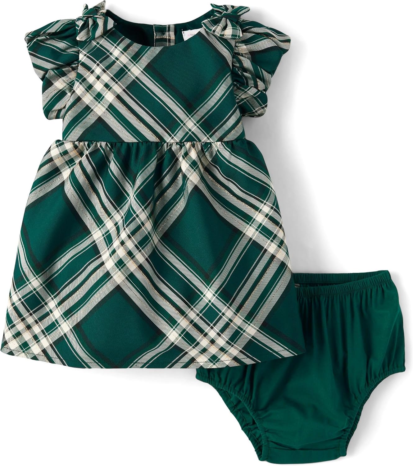 The Children's Place baby-girls And Newborn Short Sleeve Dressy Dress and Diaper Cover Set