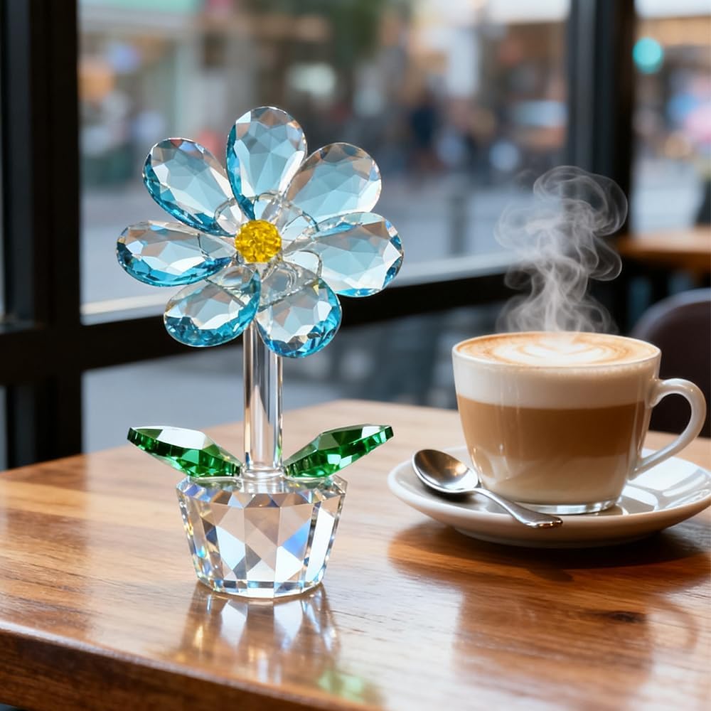 Crystal Flower Figurine Faceted Glass Blue Flower Statue Paperweight Gift for Her Collectible Ornament Desk Home Decor