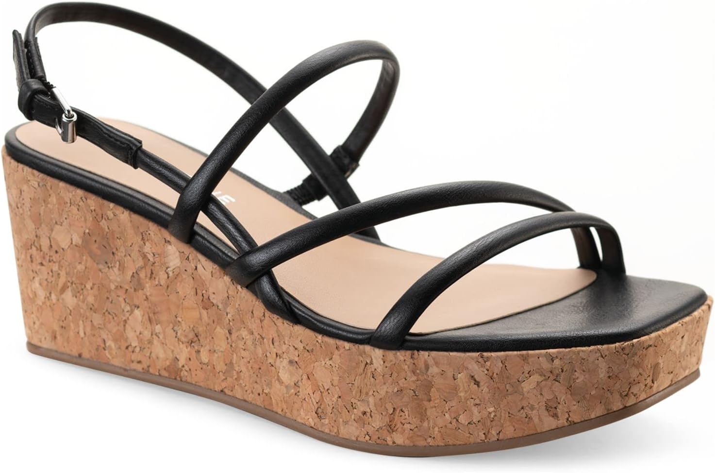 SUN STONE Womens Black 1" Platform Cork-Like Strappy Padded Bella Square Toe Wedge Buckle Slingback Sandal 8.5 M