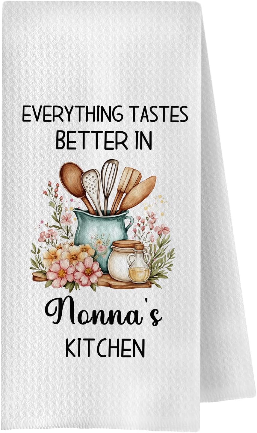 Nonna Grandma Kitchen Towels, Nonna Grandmother Gifts for Birthday Christmas Decorative Hand Towels, Grandma Gifts from Grandkids Dish Tea Towel for Kitchen, 16x24 Inch