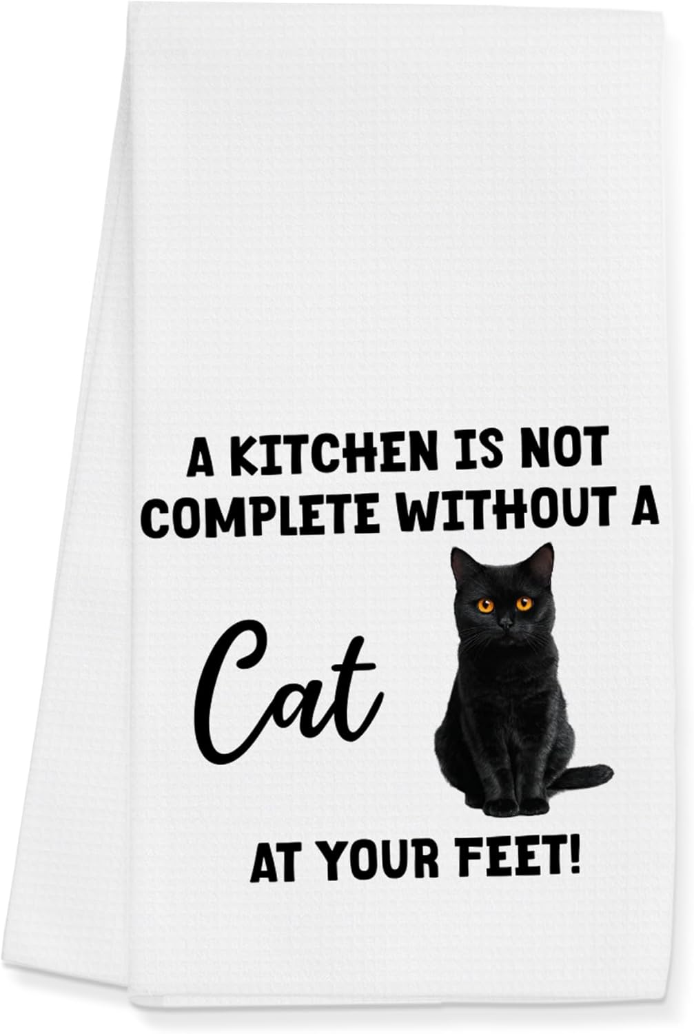 Funny Black Cat Kitchen Towels Gifts for Women Men, Black Cat Lover Dishcloths Tea Towels for Kitchen Bathroom Decor (16x24 inches)