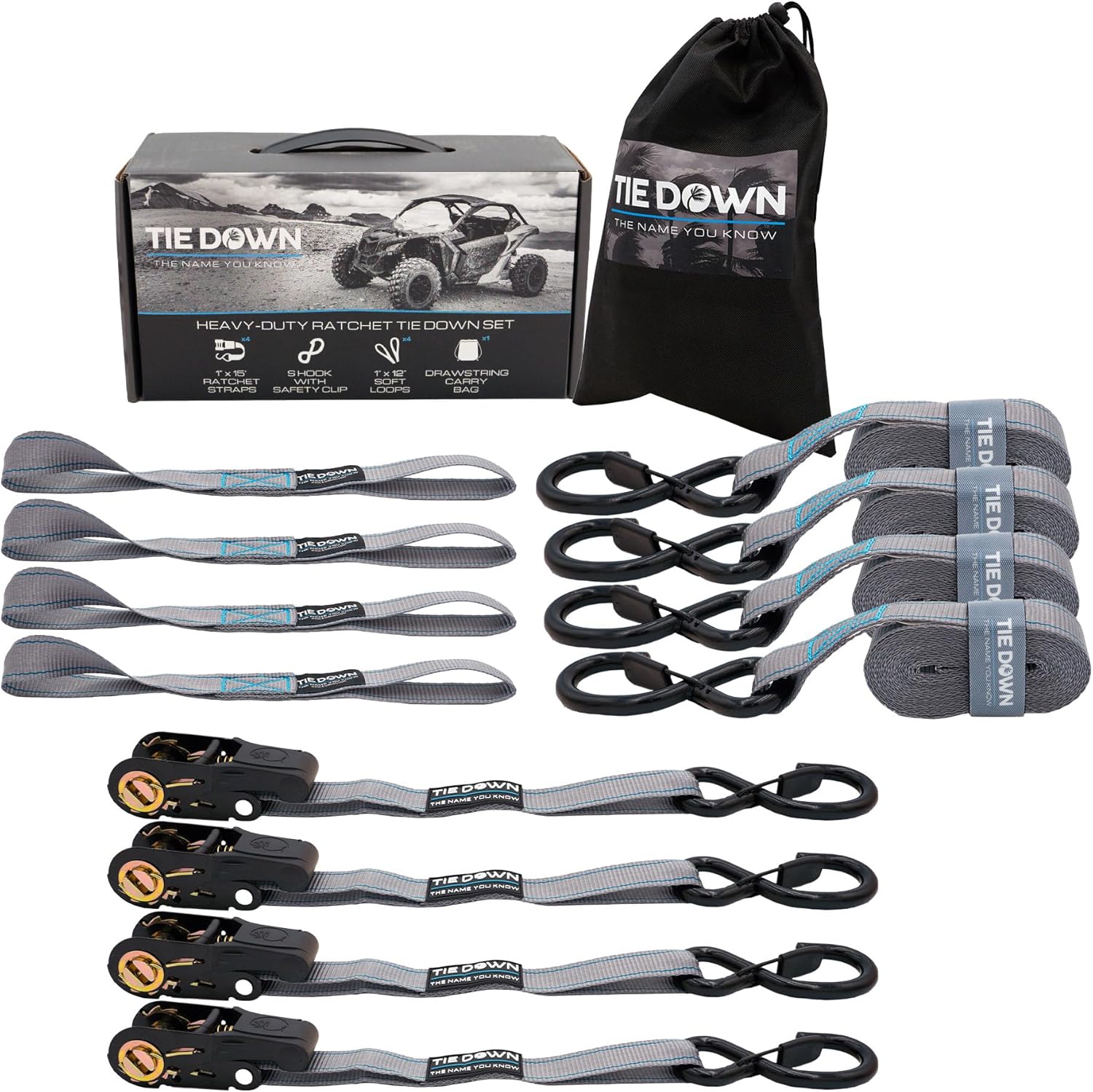 - [VERSATILE CARGO SECURING] These Tie Down Ratchet Straps are your go-to solution for securing a wide array of bulky items, from motorcycles and ATVs to kayaks, furniture, and more.