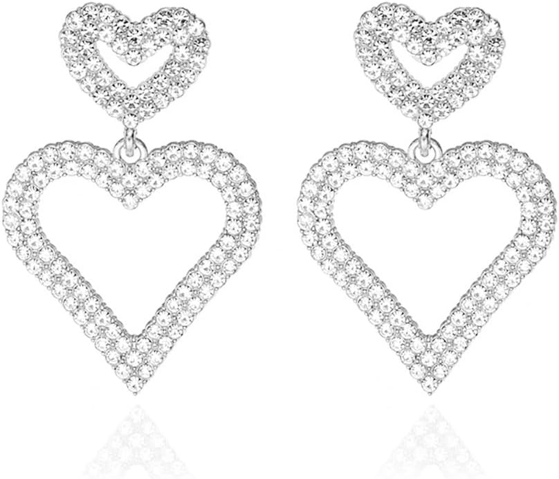 Sparkly Rhinestone Love Heart Dangle Earrings,Big Peach Heart Crystal Hoop Earrings Wedding Bridal Party Statement Jewelry for Women