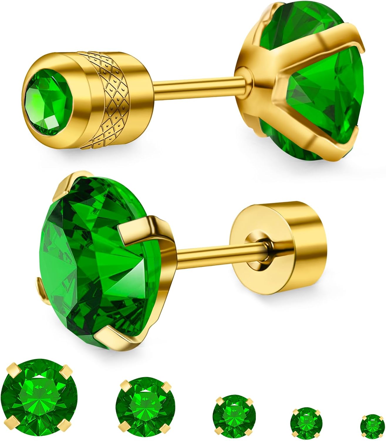 5 Pairs Flat Back Stud Earrings for Women, Trendy Cartilage Earring, Hypoallergenic Titanium Earrings Set, Cubic Zirconia Flatback Ear Rings Non Tarnish