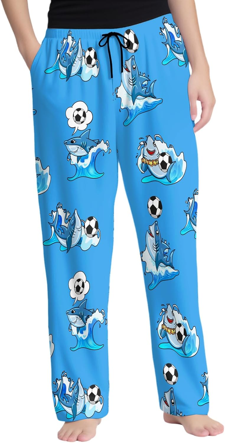 Shark Football Men's Pajama Pants with Pockets Elastic Waistband Breathable Lightweight Sleep Pants for Men Soft Lounge Pants M