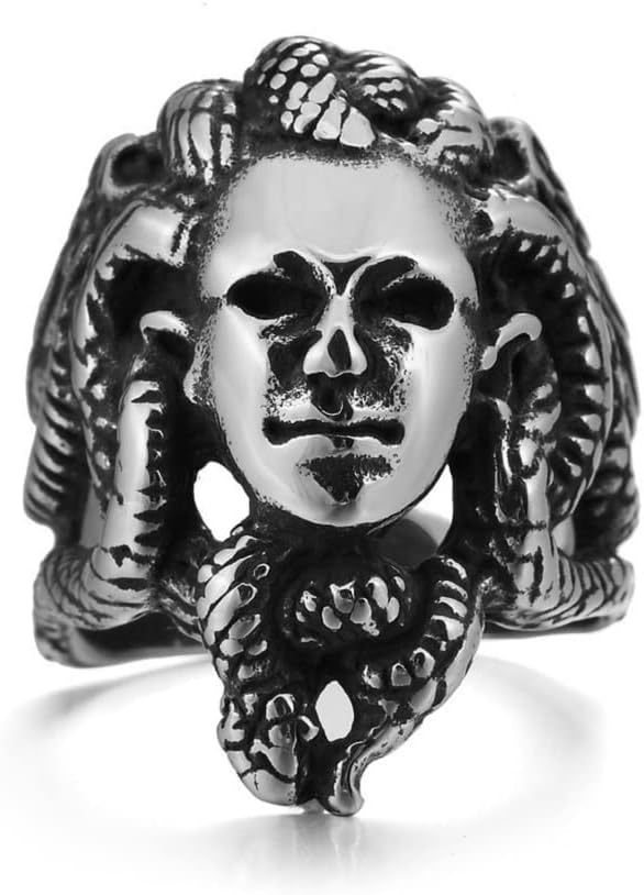 Medusa Ring for Men, Greek Mythology Medusa Snake Gorgon Ring, Stainless Steel Norse Viking Medusa Head Ring, Vintage Medusa Serpent Totem Amulet Ring, Punk Medusa Jewelry Gift for Men mens