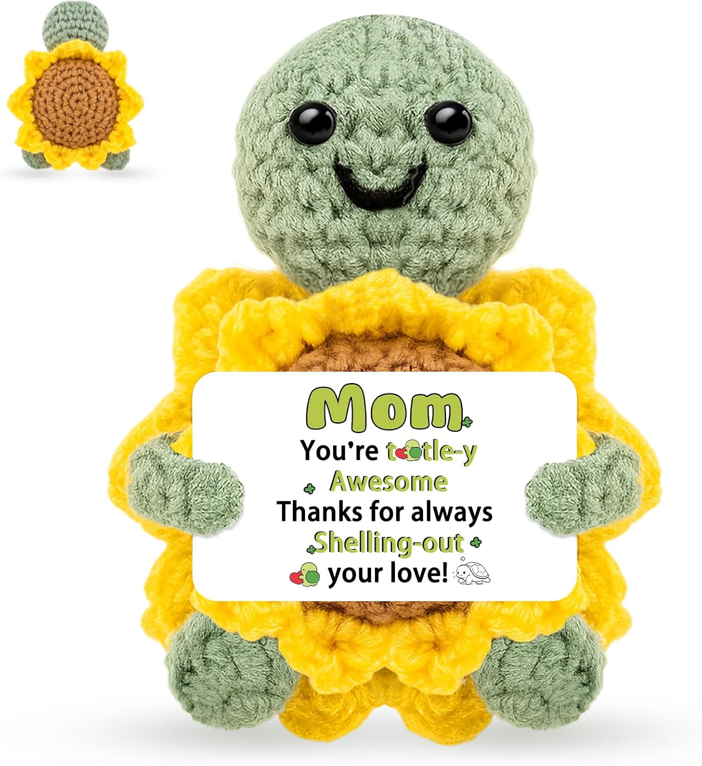 - Positive Crochet Sunflower Turtle Doll: This turtle plush is a special gift for mom to cherish. This handcrafted crochet turtle makes a deeply meaningful gift for mom, perfect as a mom birthday gift or a supportive cheer up gift for women. Whether you're looking for thoughtful gifts for mom birthday or a special birthday gift for mom from daughter son, this symbolic piece conveys unwavering love and appreciation.