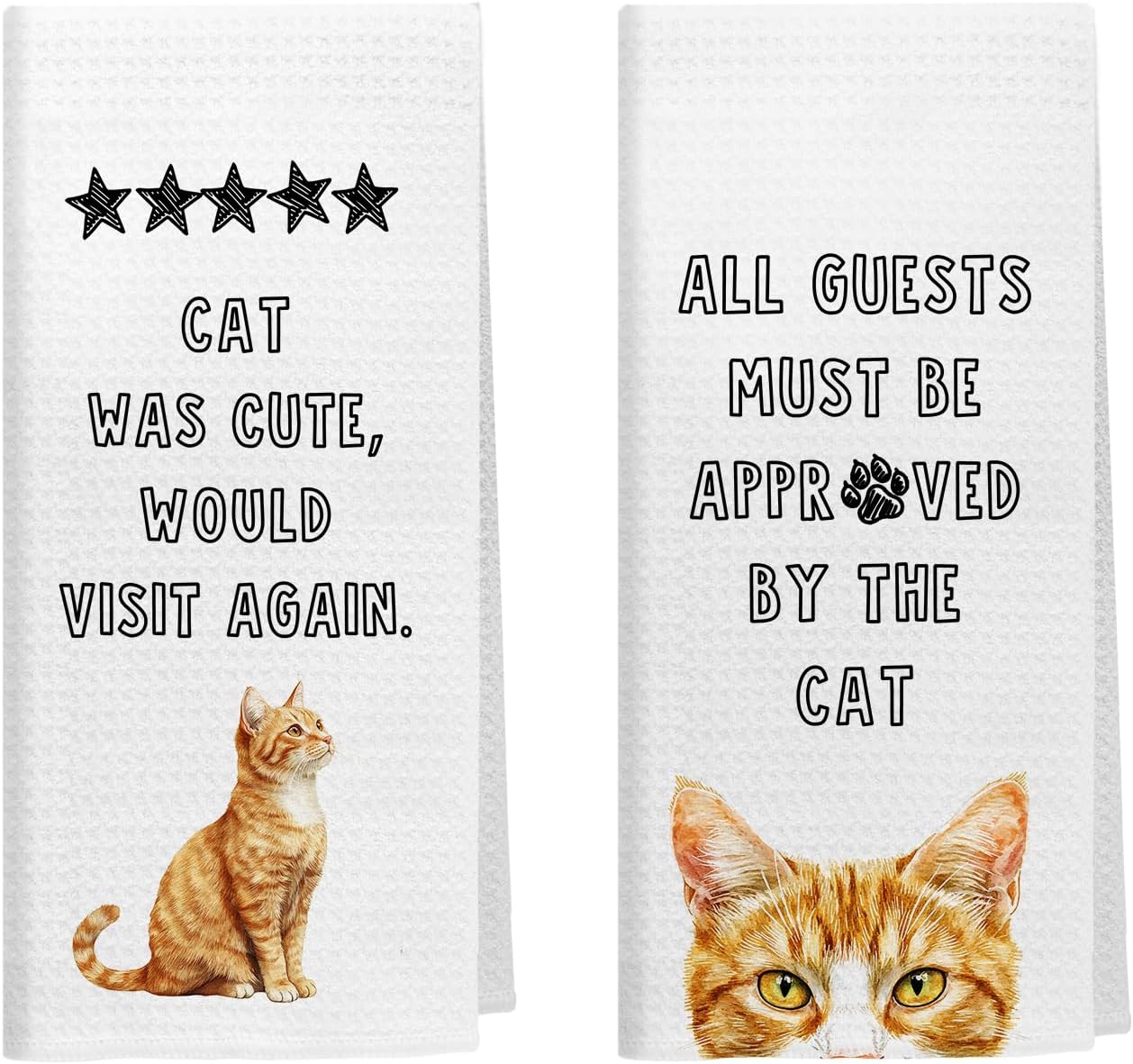 Funny Orange Tabby Cat Kitchen Towels Set of 2, Cats Lover Mom Lady Gifts, All Guests Must Be Approved by The Cat Decorative Hand Dish Tea Towels for Bathroom Kitchen, 16x24 Inch