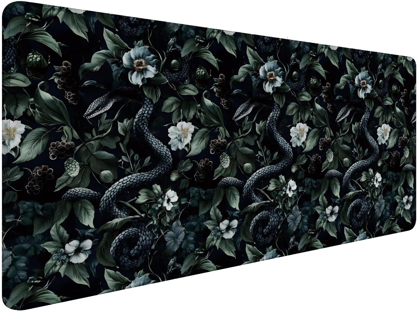 Dark Green Gothic Botanical Serpent Large Mouse Pad 31.5x15.7inch, Dark Academia Moody Witchy Floral Snake Big Extended Desk Mat Mousepad XL Gaming Keyboard Mat for Home Office Accessories