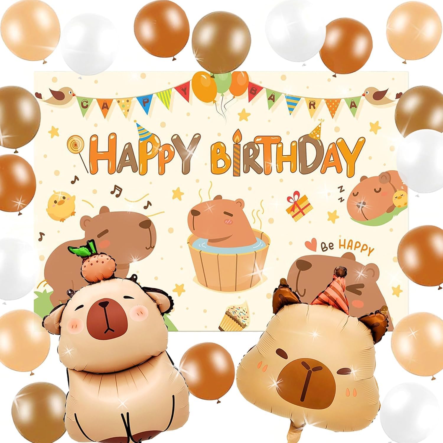 - Capybara Party Decor: Includes1X Happy birthday Capybara backdrop,20X latex balloons,2XCapybara Foil Balloons,Ideal for a capybara themed birthday, baby shower, or classroom event.
