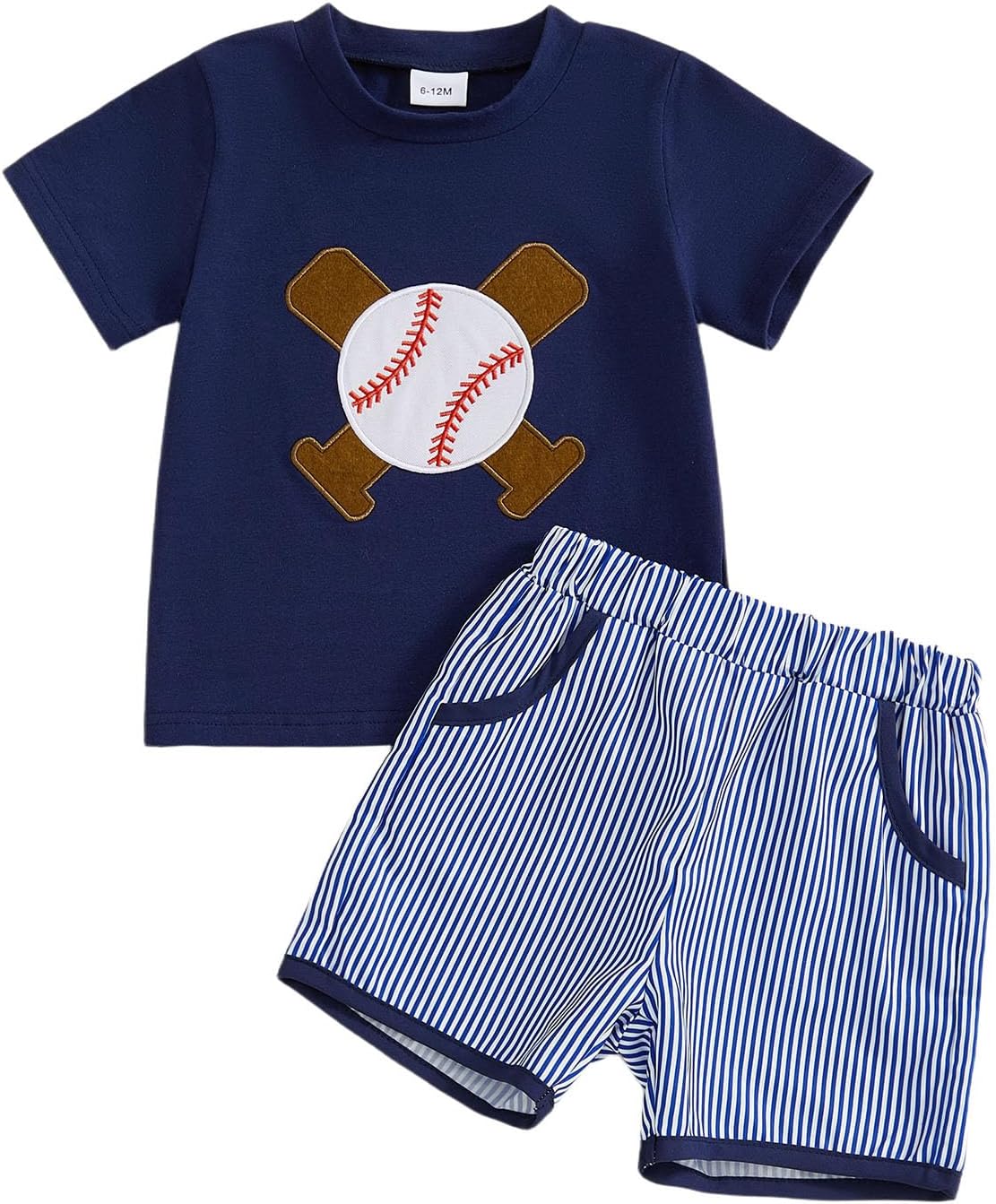 Toddler Baby Boy Baseball Outfit Summer Embroidery Short Sleeve T Shirt Plaid Shorts 2 Pcs Boys Clothes Set