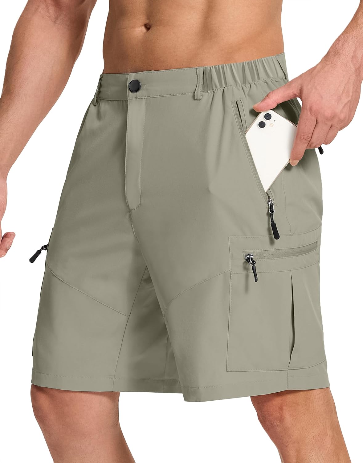 Mens Hiking Cargo Shorts with 6 Zipper Pockets 9" Quick-Dry Lightweight Short for Golf Casual Fishing