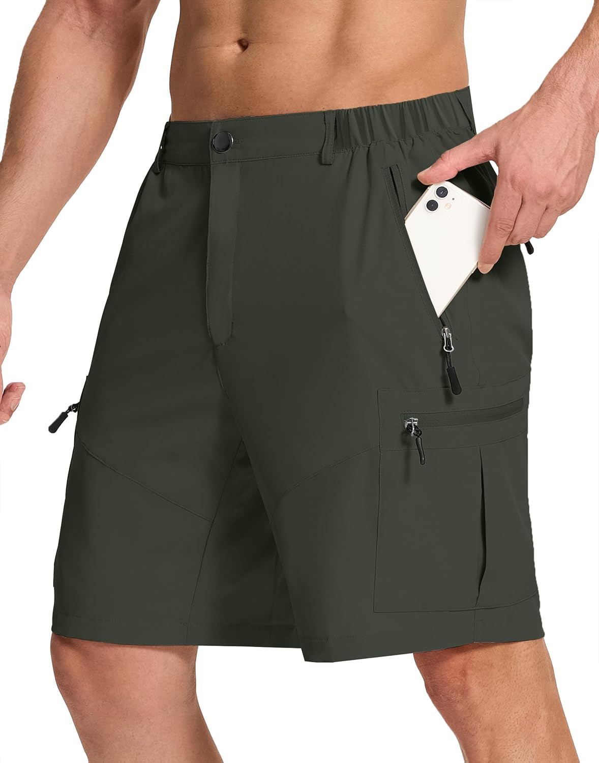 Mens Hiking Cargo Shorts with 6 Zipper Pockets 9" Quick-Dry Lightweight Short for Golf Casual Fishing