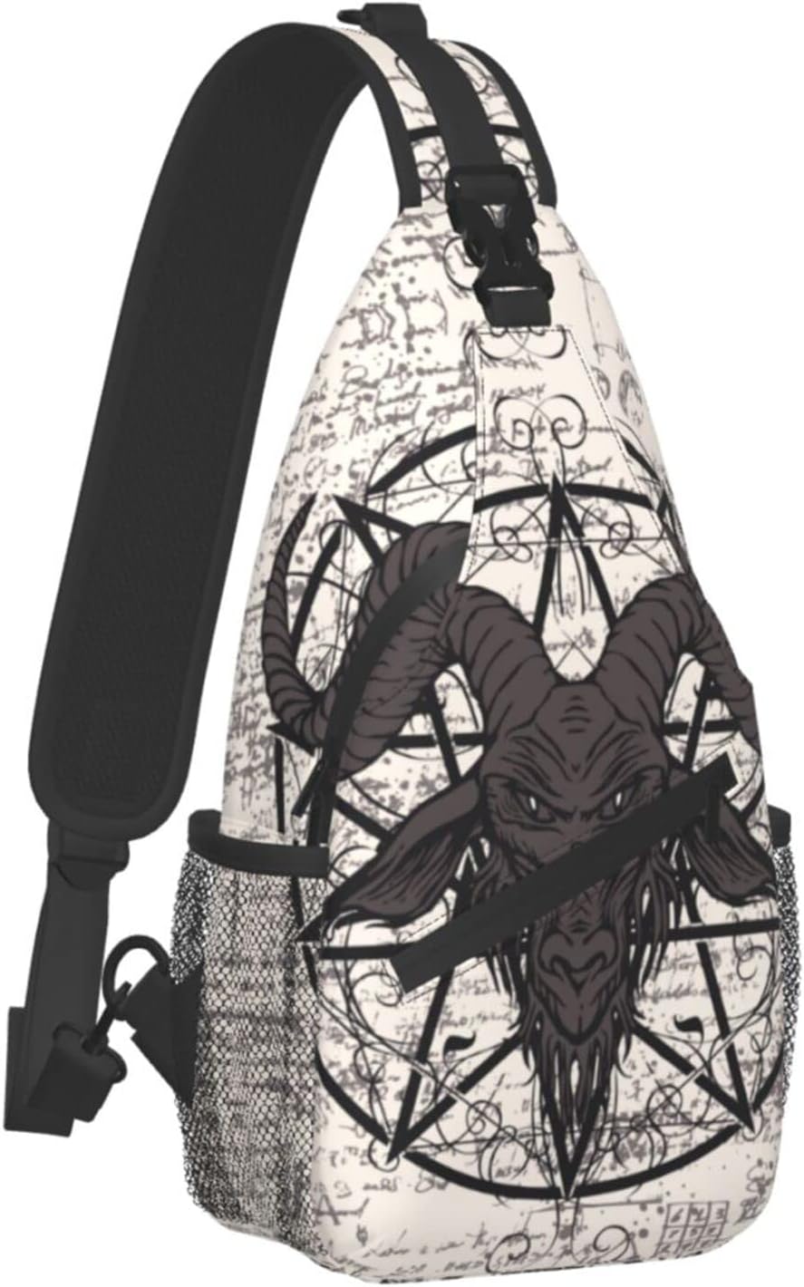 bassyil Goat Skull Sling Bag Crossbody Travel Hiking Chest Backpack Shoulder Daypack for Women Men One Size