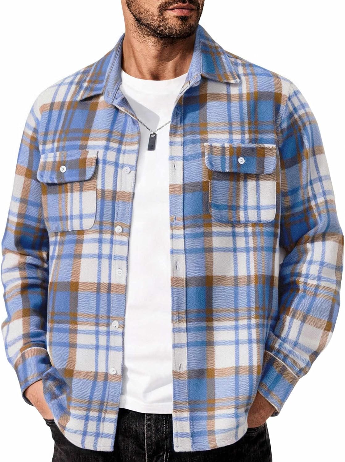 COOFANDY Men's Flannel Shirts Long Sleeve Cotton Plaid Shirt Jacket Casual Button Down Shirt with Pockets