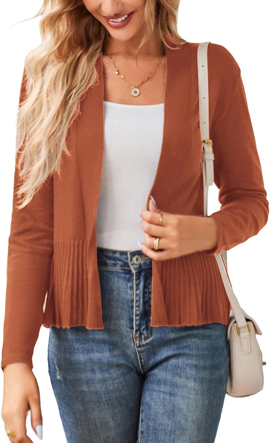 GRACE KARIN Women's Lightweight Draped Open Front Cropped Cardigan Long Sleeve Sweaters Peplum Knit Tops