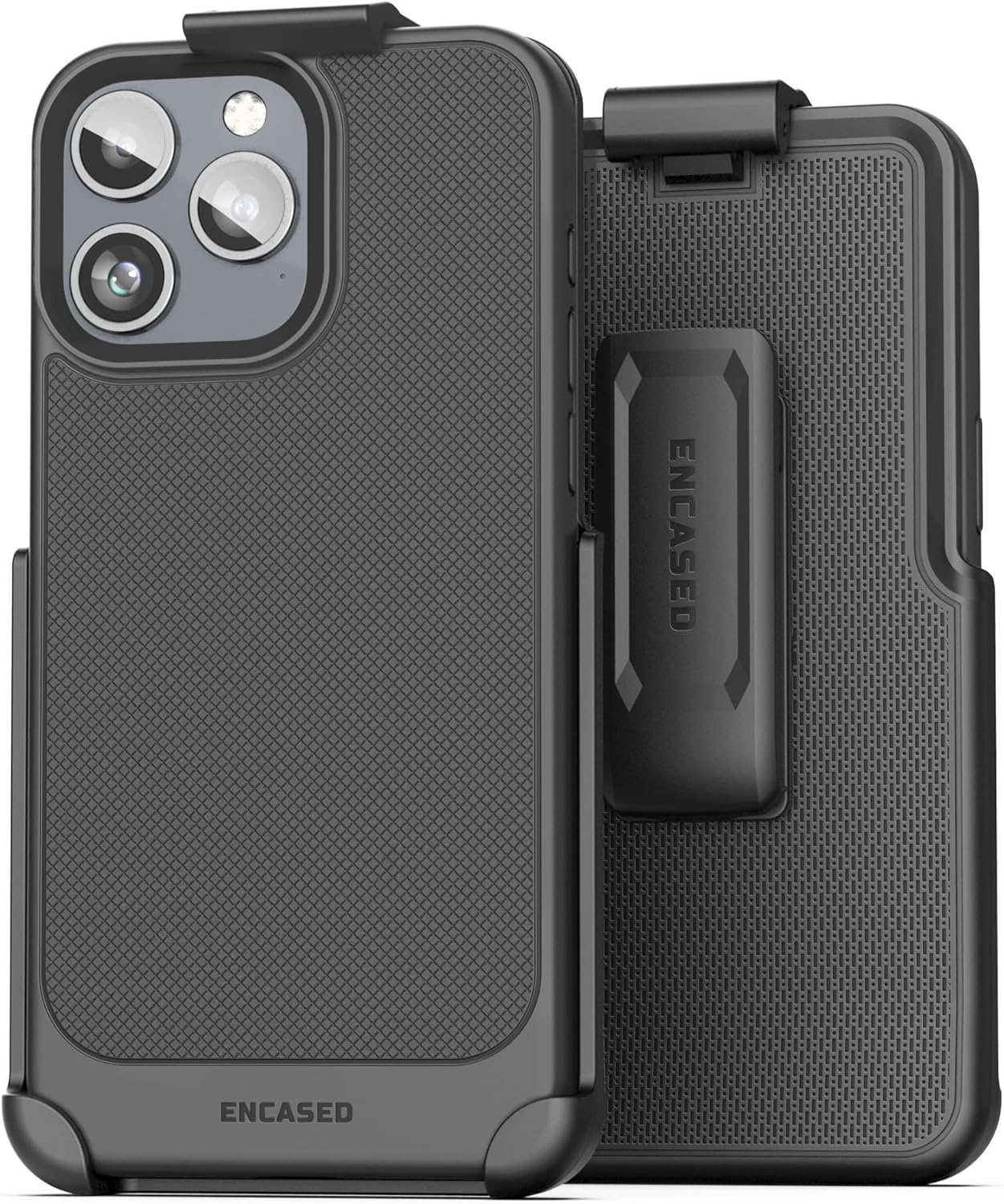 Encased Belt Case for iPhone 15 Pro Max (2023) Thin Armor Slim Cover with Rotating Phone Holster Clip - Black