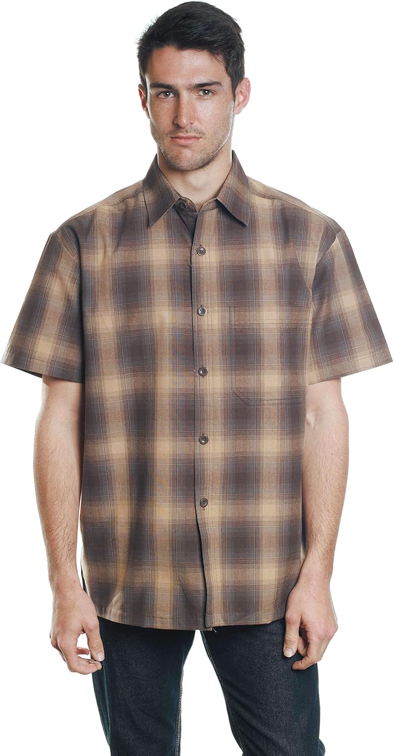 YAGO Men's Casual Checkered Relaxed Fit Button Up Short Sleeve Work Shirt