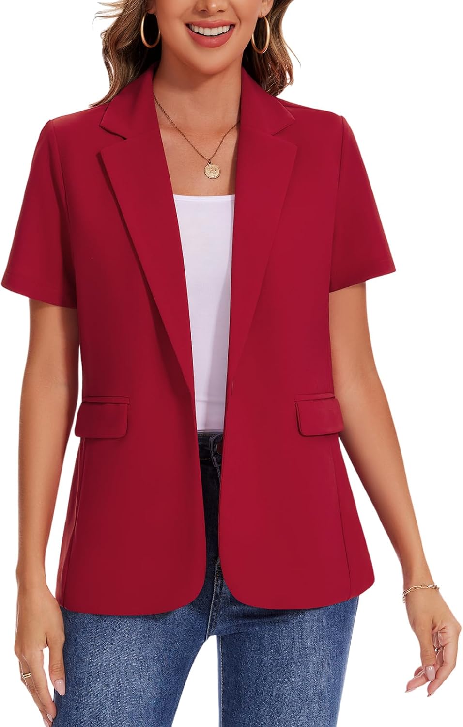 MINTLIMIT Women Short Sleeve Blazer Lightweight Button Front Business Jacket Notched Lapel Work Office Blazers with Pockets