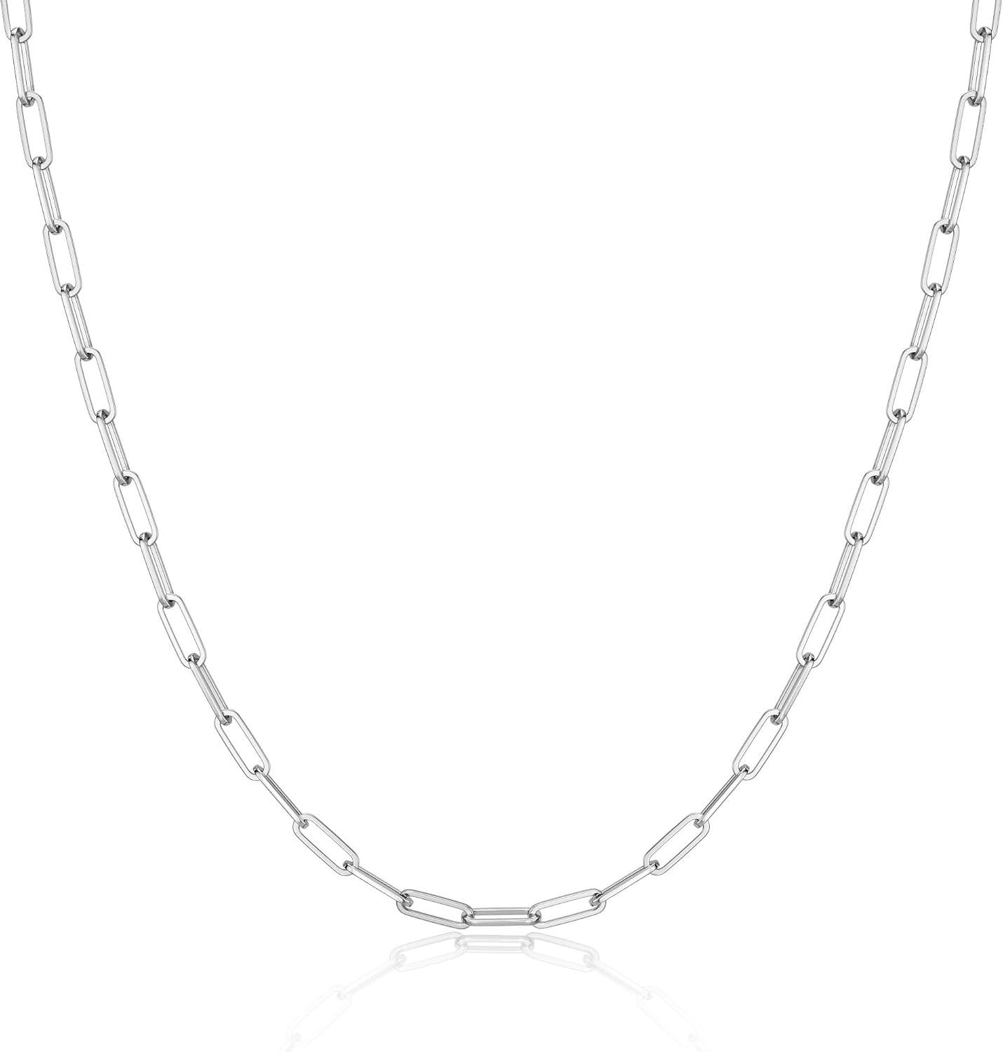 MBW Silver Paperclip Chain Necklace for Women,Dainty Sterling Silver Choker Necklaces for Women Trendy Simple Long Chunky Minimalist Waterproof Link Necklace Jewelry Gifts for Women 16/18/20 in